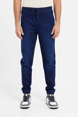 بنطلون جينز بخصر مطاطي باللون الكحلي للرجال
