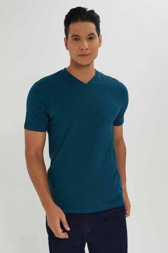 تيشيرت برقبة دائرية باللون الأزرق للرجال
