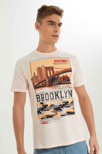 تيشيرت مطبوع باللون البرتقالي للرجال