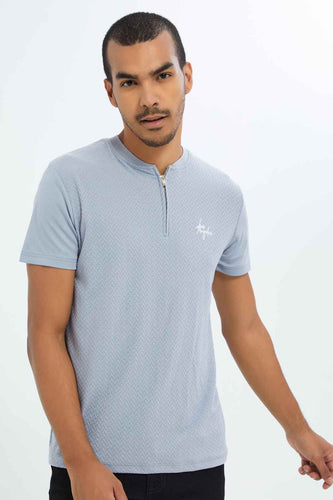 تيشيرت مع سحّاب باللون الأزرق السماوي للرجال