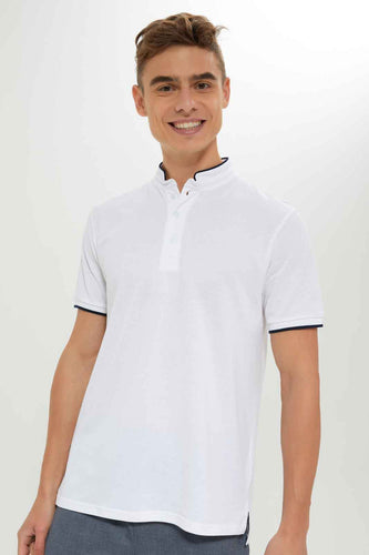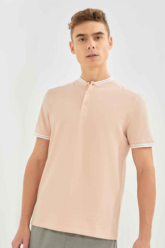 تيشيرت بولو باللون الوردي بياقة مرتفعة للرجال
