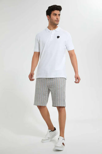 White Chino Short With Belt شورت تشينو بحزام باللون الأبيض