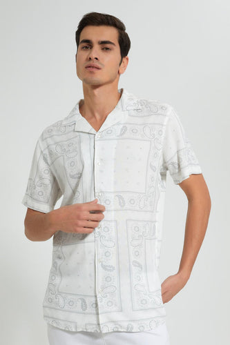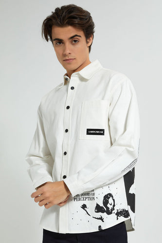White Printed Shirt قميص بطبعات متناثرة باللون الأبيض