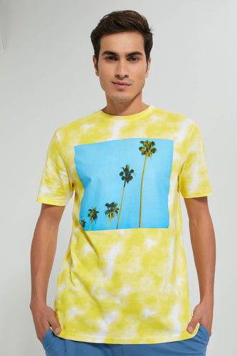 Yellow Tie And Dye Printed T-Shirt تيشيرت باللون الأصفر بطبعات