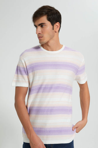 Purple And Beige Striped T-Shirt تيشيرت مخطط باللون البيج والبنفسجي