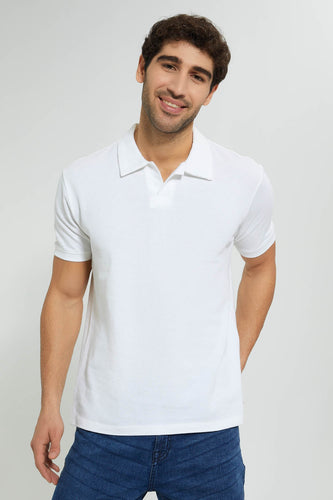 White Buttonless Polo Shirt تيشيرت بولو بدون أزرار باللون الأبيض