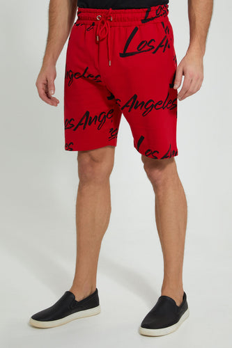 Red Printed Loungewear Short شورت منزلي بطبعات باللون الأحمر