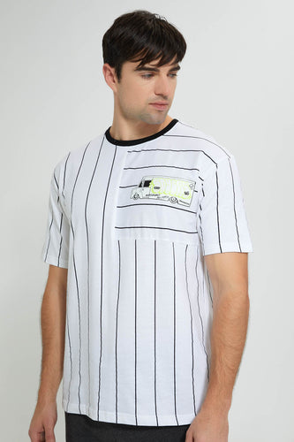 White Striped T-Shirt تيشيرت باللون الأبيض مخطط