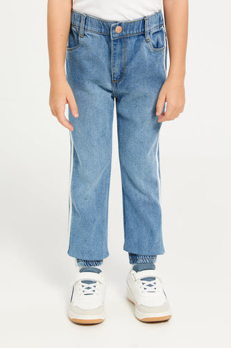 بنطال رياضي من قماش الدنيم بشريط جانبي أزرق للأولاد
