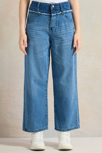 بنطلون جينز واسع الساق باللون الأزرق الداكن للفتيات في سن المراهقة