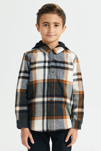 قميص منقوش متعدد الألوان للأولاد مع غطاء رأس قابل للفصل