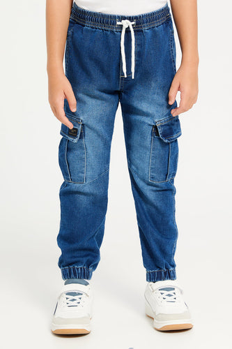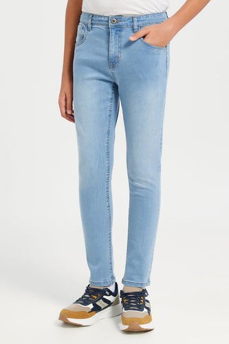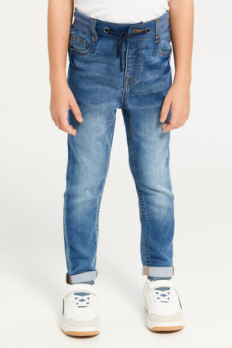 • بنطلون جينز مطاطي أزرق للأولاد الكبار