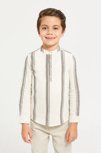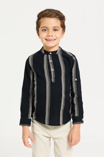 قميص أزرق داكن بياقة ماندرين للأولاد