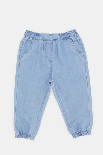 بنطلون جينز نسائي أزرق بجيوب مرنة