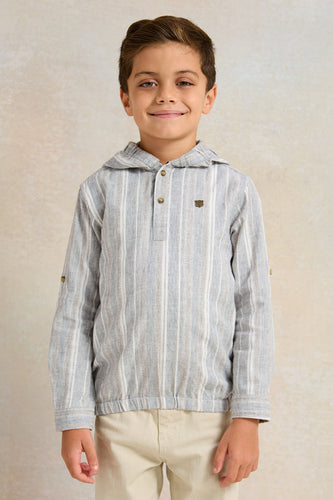 قميص رمادي مخطط بغطاء رأس للأولاد