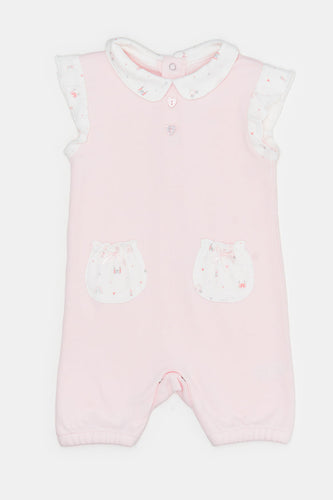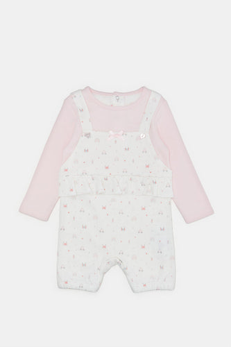 طقم تي شيرت ودنغري مطبوع باللون الوردي الفاتح