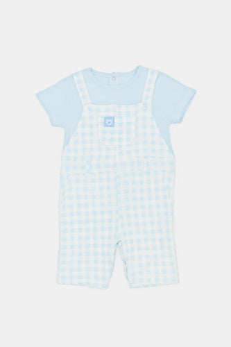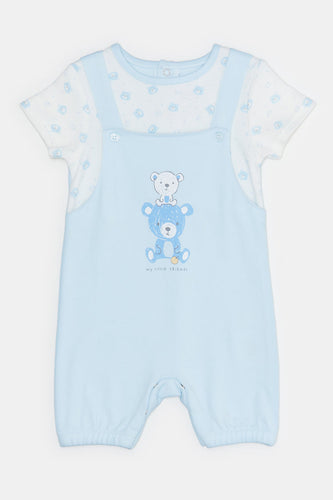 طقم تي شيرت ودنغري مطبوع باللون الأزرق الفاتح