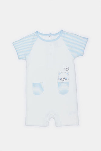 بدلة رومبير لحديثي الولادة باللونين الأبيض والأزرق مع جيوب
