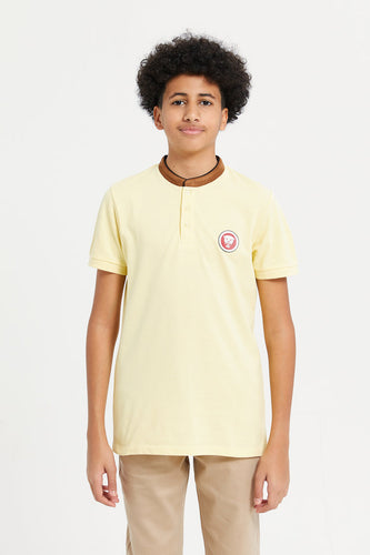 تيشيرت بياقة ماندرين باللون الأصفر للأولاد الكبار