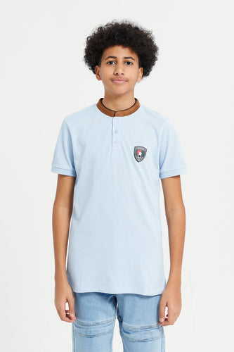 تيشيرت بولو بياقة ماندرين باللون الأزرق للأولاد الكبار