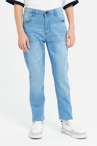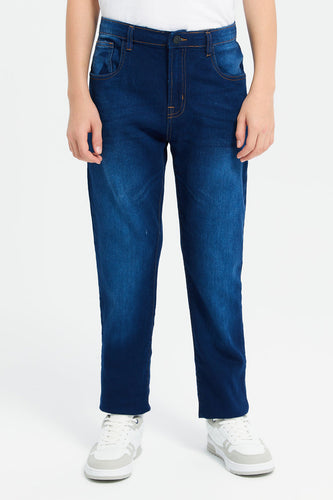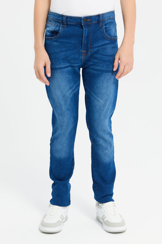 جينز سادة إسترتش باللون الأزرق للأولاد الكبار