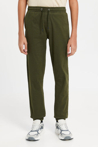 بنطلون رياضي سادة سهل الإرتداء باللون الزيتي للأولاد الكبار