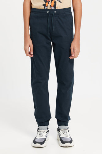 بنطلون رياضي سادة سهل الإرتداء باللون الكحلي للأولاد الكبار