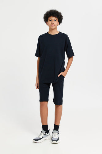 طقم كاجوال أساسي أسود كبير الحجم للأولاد الكبار (قطعتان)