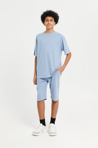 طقم كاجوال أساسي كبير الحجم للأولاد باللون الأزرق (قطعتان)