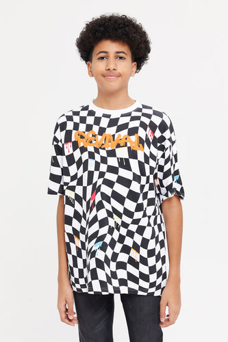 تي شيرت كبير الحجم مطبوع بالأبيض والأسود للأولاد الكبار