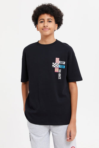 تيشيرت مطبوع باللون الأسود للأولاد الكبار