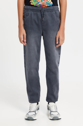 بنطلون رياضي للأولاد باللون الرمادي من قماش الدنيم المتماسك مع أساور
