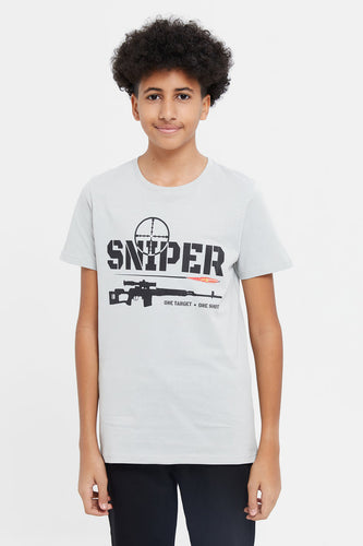 تي شيرت برسومات قناص رمادي بأكمام قصيرة للأولاد الكبار