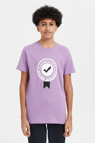 تي شيرت برسومات جرافيكية بأكمام قصيرة ومعتمد باللون الليلكي للأولاد