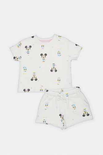 طقم كاجوال مطبوع باللون العاجي للبنات الرضّع (قطعتين)