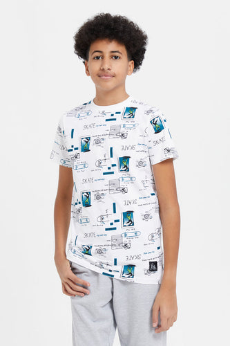 تي شيرت أبيض مطبوع للأولاد الكبار