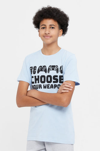 تي شيرت مطبوع باللون الأزرق للأولاد الكبار