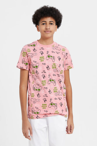 تي شيرت مطبوع باللون الوردي للأولاد الكبار