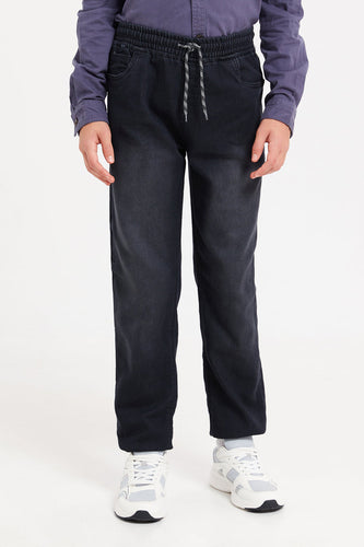 بنطال رياضي أسود للأولاد الكبار يرتدي قماش الدنيم المتماسك مع أساور
