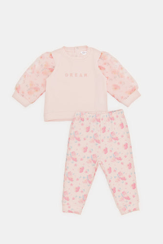 طقم الركض ذو الزهور الوردية للفتيات الصغيرات (قطعتان)