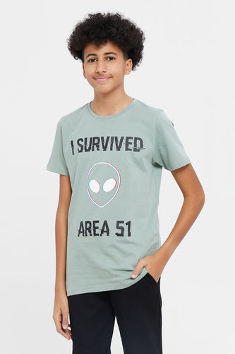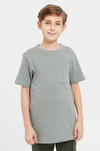 تي شيرت للأولاد الصغار باللون الزيتوني بأكمام قصيرة وجيب