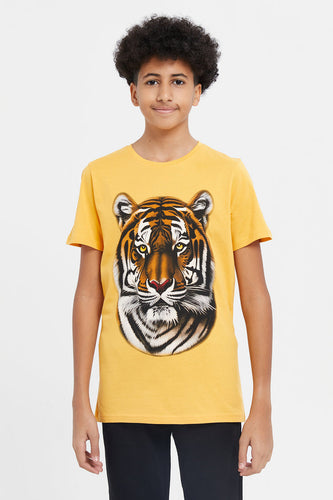 تي شيرت برسومات بأكمام قصيرة ووجه أسد الخردل للأولاد الكبار