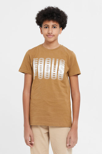 تي شيرت برسومات بأكمام قصيرة باللون البني