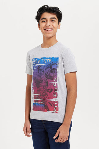 تي شيرت كابتن أمريكا باللون الرمادي للأولاد الكبار