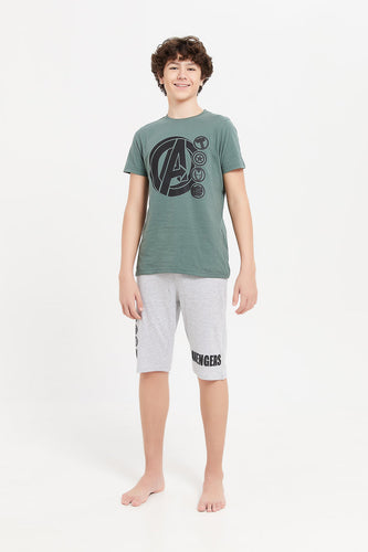 طقم بيجامة بطبعة أفنجرز باللونين النعناعي والرمادي للأولاد الكبار (قطعتين)