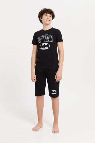 طقم بيجامة أسود بطبعة باتمان للأولاد الكبار (قطعتان)