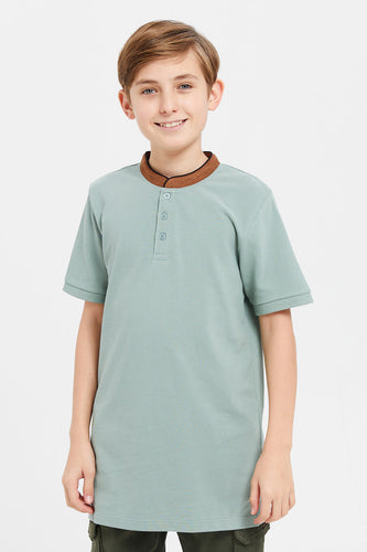 قميص بولو بياقة مندرين النعناع للأولاد الكبار