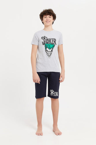 طقم بيجامة بطبعة الجوكر باللونين الرمادي والأزرق للأولاد الكبار (قطعتان)