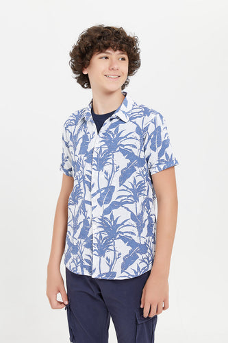 طقم كاجوال مطبوع باللون الأزق للأولاد الكبار (قطعتين)