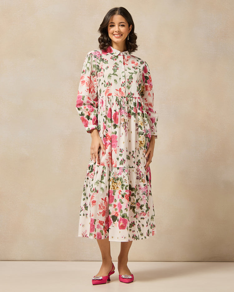 هذا الفستان المتدرج بطبعات الأزهار مزيج مثالي من الأناقة والأنوثة. مصمم بقصة انسيابية متدرجة، يوفر مقاسًا مريحًا وجذابًا. تضفي نقوش الأزهار الرقيقة لمسة من السحر، مما يجعله مثاليًا للنزهات غير الرسمية، أو مواعيد الغداء، أو حتى المناسبات الخاصة. مصنوع من قماش ناعم يسمح بمرور الهواء، يضمن لك هذا الفستان راحة طوال اليوم مع الحفاظ على أناقتك دون عناء. نسقيه مع صندل لإطلالة مريحة، أو مع حذاء بكعب عالٍ لإطلالة راقية.